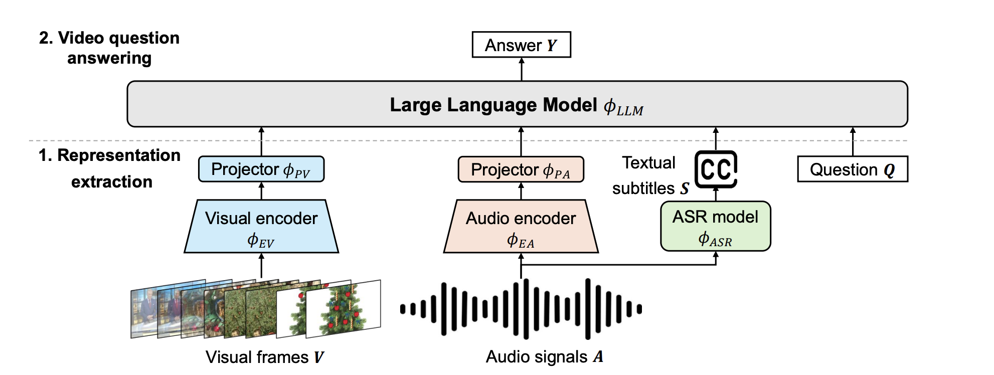 - 단순히 “비디오 설명 + 오디오 설명을 이어붙이기”는 시간적 대응 실패 → QA 성능 저하.